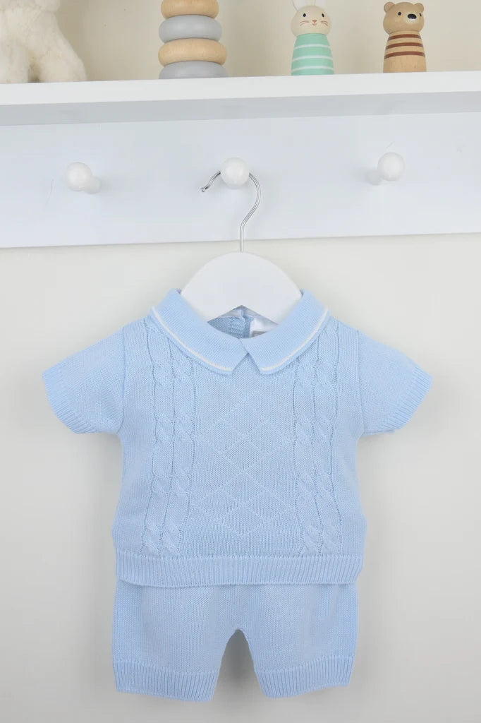 This charming argyle and cable short set is pure joy for little ones. Featuring a classic argyle pattern paired with cosy cable-knit details, it's the perfect blend of timeless style and playful comfort. The coordinated shorts and top combo makes dressing your baby a breeze, while the quality fabrics ensure all-day wearability. Whether it's a special occasion or casual playtime, this beautiful set keeps your little one looking smart and feeling snug.