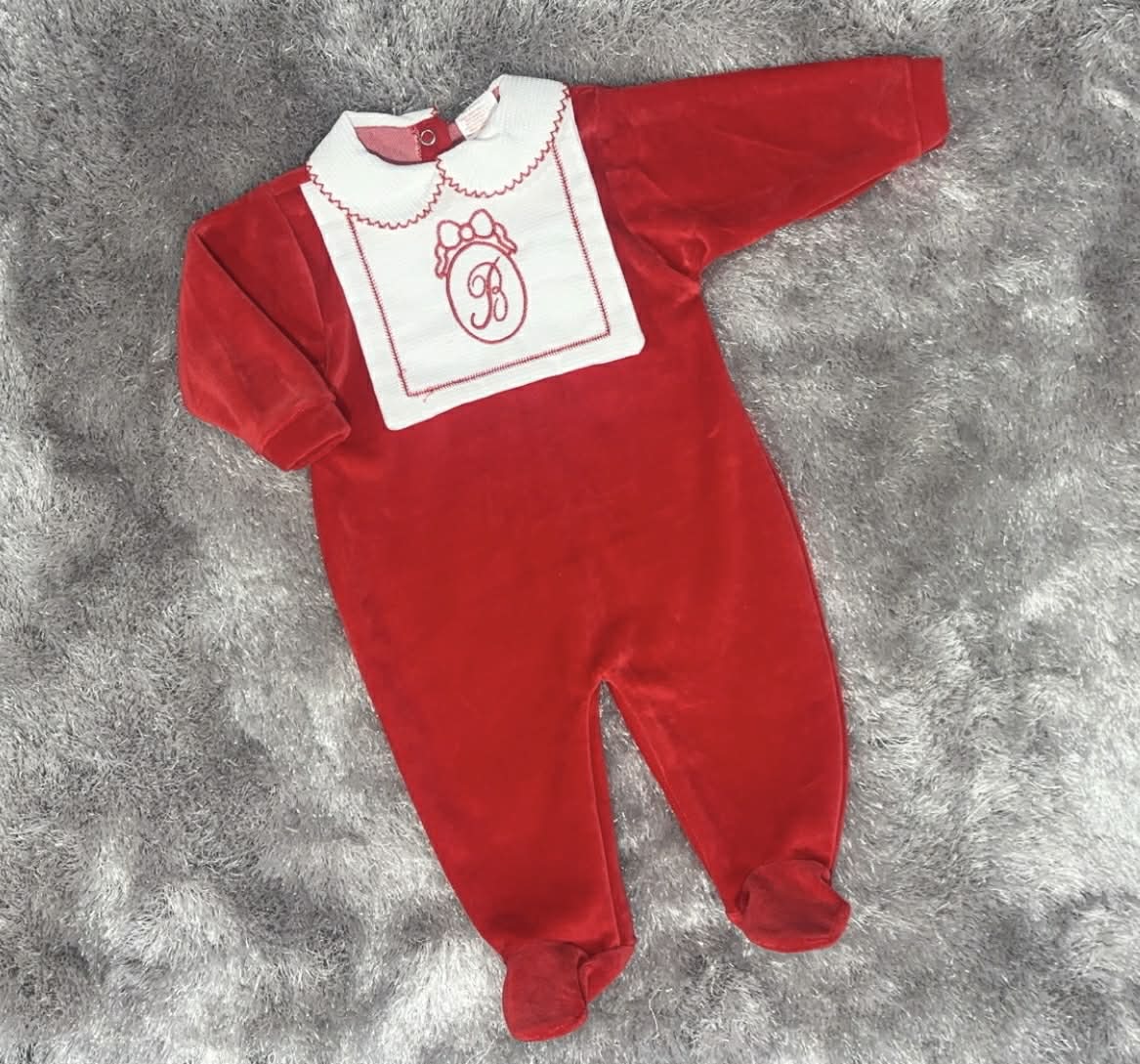 Believe in style with this adorable red velour babygrow, complete with an embroidered "Believe" message and charming bow detail. Crafted from soft, luxurious velour fabric, it's perfect for keeping your little one cosy and chic. The all-in-one design makes dressing effortless, while the eye-catching embroidery adds personality to playtime or special occasions. A delightful choice for parents who want their baby looking absolutely fabulous.