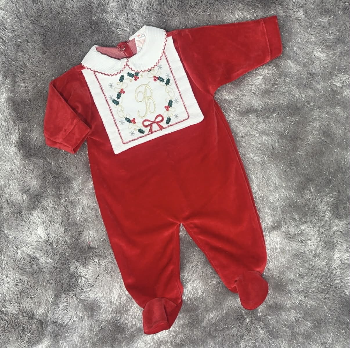 Believe in style with this adorable red velour babygrow, complete with an embroidered "Believe" message and charming bow detail. Crafted from soft, luxurious velour fabric, it's perfect for keeping your little one cosy and chic. The all-in-one design makes dressing effortless, while the eye-catching embroidery adds personality to playtime or special occasions. A delightful choice for parents who want their baby looking absolutely fabulous.