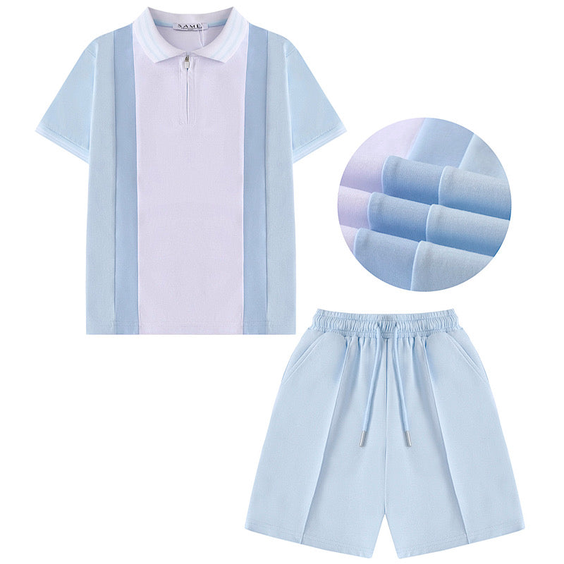 Classic contrast polo set in crisp blue and white, designed for a timeless, polished look. The colour-block styling adds visual interest while maintaining versatile appeal. Crafted for comfort and durability, this set works beautifully for casual outings, special occasions, or everyday wear. A wardrobe staple that pairs effortlessly with other pieces.