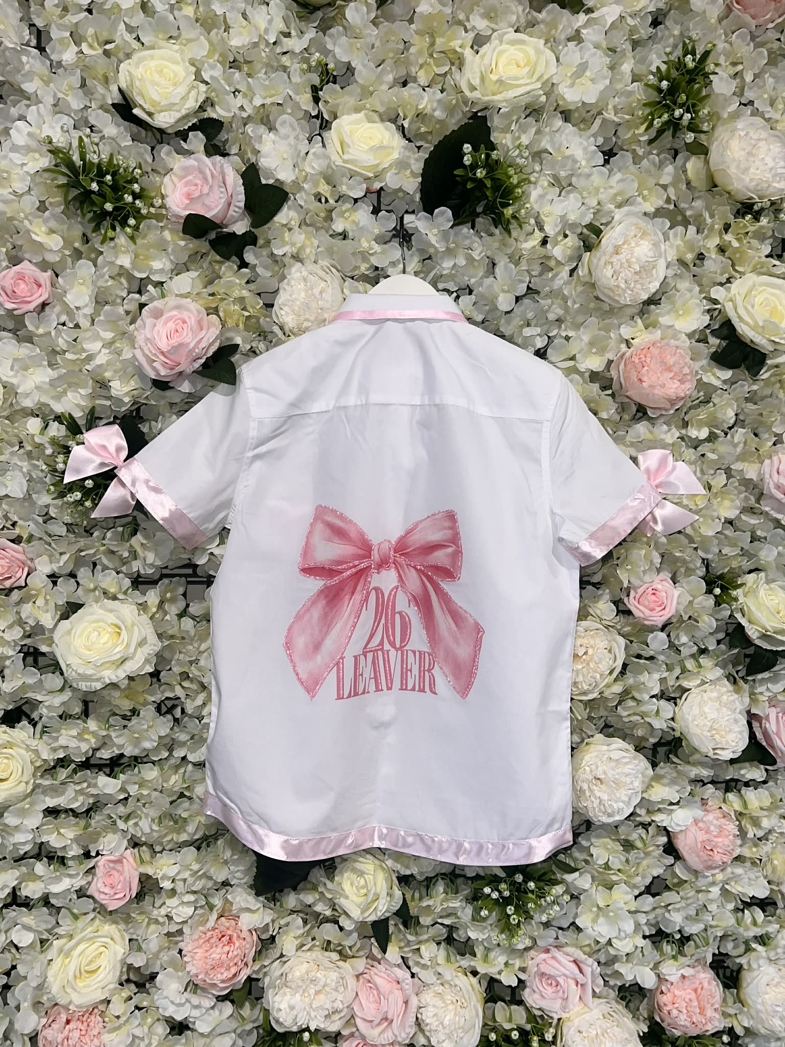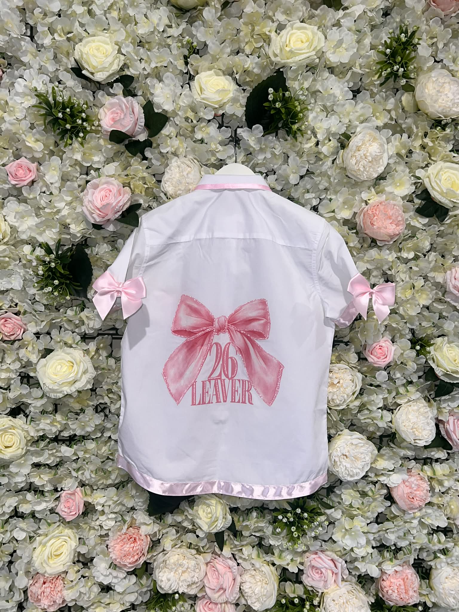 Celebrate the end of an era with our personalised Leavers Shirt, complete with pink satin bows and ribbons that'll make your child the star of their final day. Each shirt arrives custom-printed with their name, ready for classmates to sign and transform into a treasured memento of school days gone by. The perfect keepsake that captures friendships, memories, and those bittersweet goodbyes. Let them leave their mark in style!