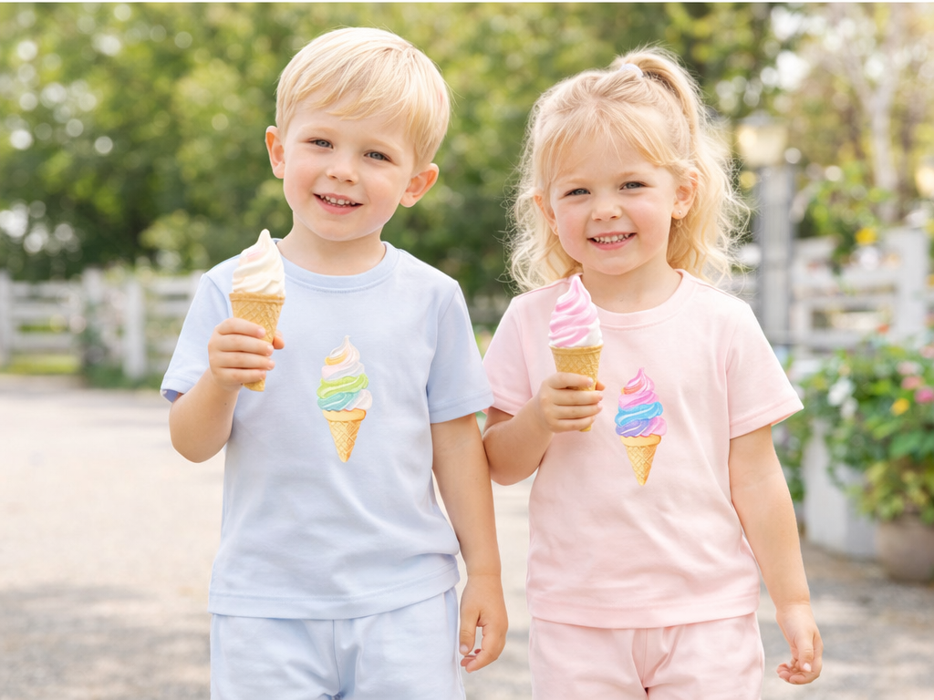 Keep your little ones cool and comfy this summer with our delightful Short Sets! Choose between cheerful rainbow or fun ice cream designs that'll have them grinning all season long. Available in soft pink or sky blue, these lightweight sets are perfect for warm days at the park, beach trips, or lazy afternoons at home. The breathable fabric keeps kids feeling fresh, while the playful prints add a splash of joy to their wardrobe. Ideal for summer adventures!